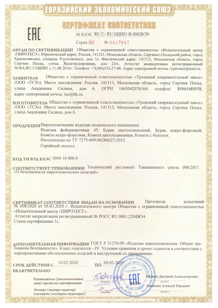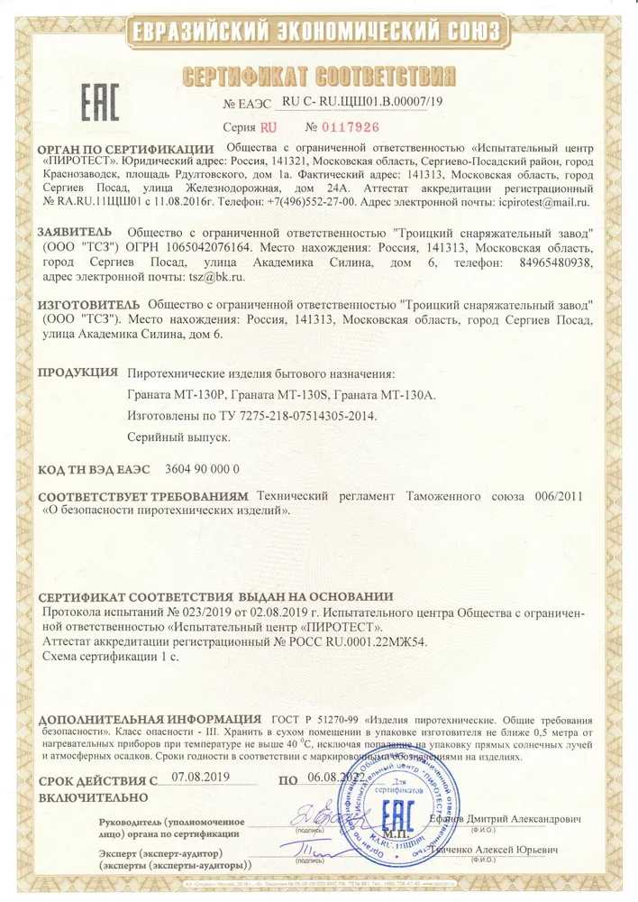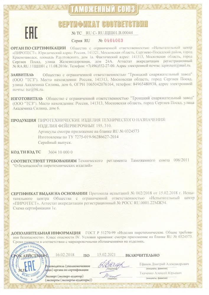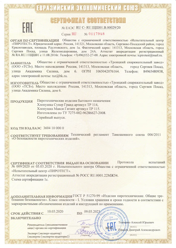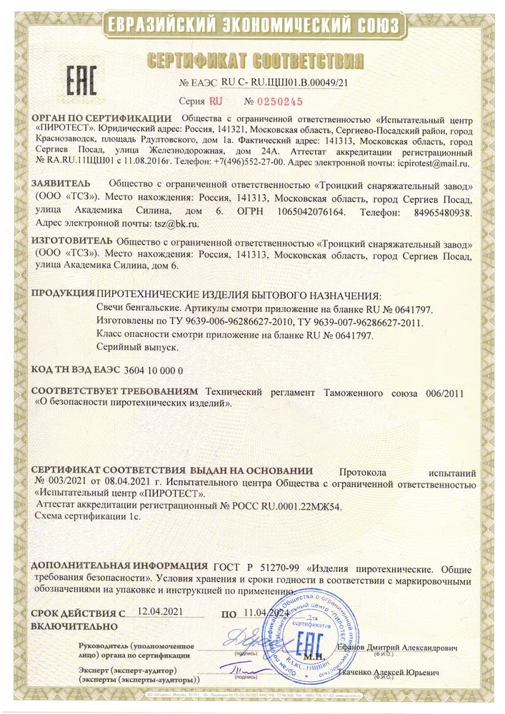 СЕРТИФИКАТЫ ТСЗ