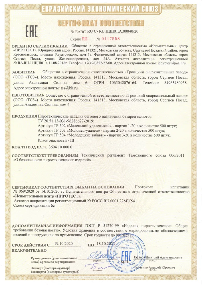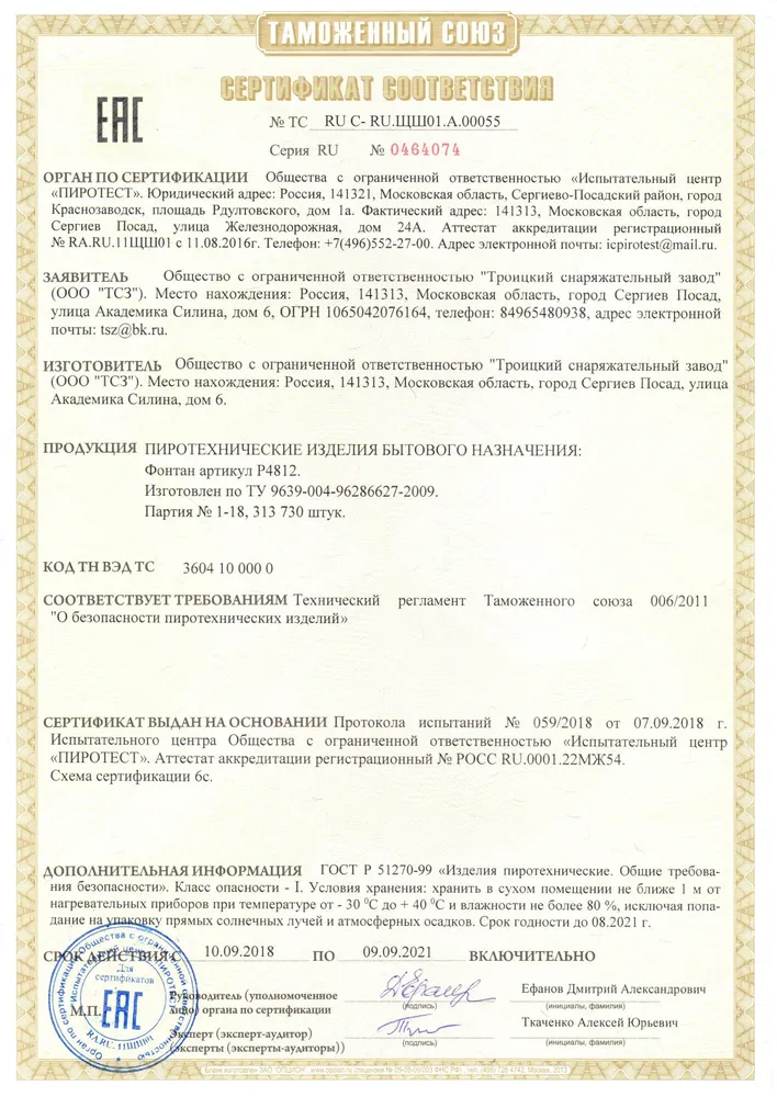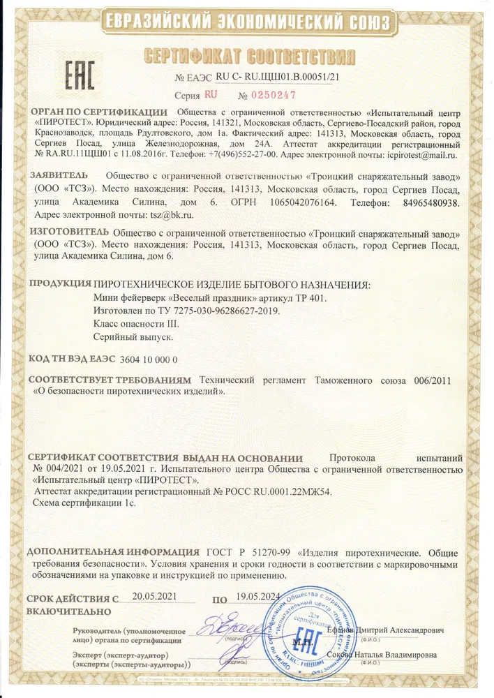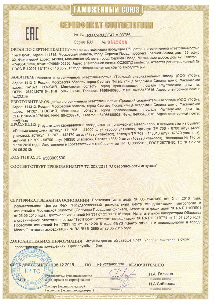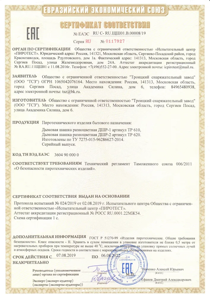 СЕРТИФИКАТЫ ТСЗ