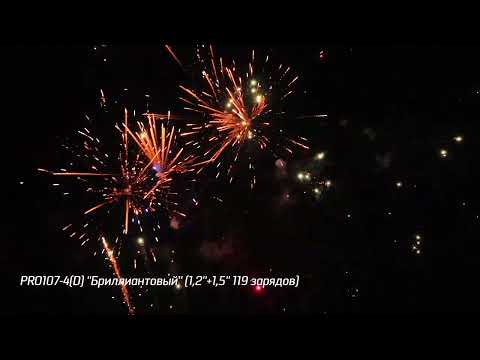 Батарея салютов PRO107-4 БРИЛЛИАНТОВЫЙ от пиротехнической компании РУССКИЕ ОГНИ включает в себя 119 разнокалиберных залпов от 1,2 до 1,5 дюймов состоящих из эффектов: