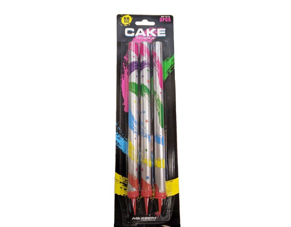 Фонтаны в торт MF-010 имеют специальную зауженную на конце ножку, за счет чего их можно легко воткнуть в любой торт, надежно фиксируясь на поверхности. Обычно хватает всего одной упаковки, чтобы украсить стандартный по размеру тортик.