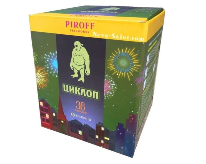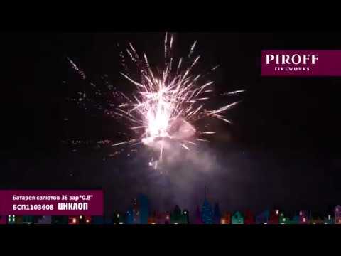 Батарея салютов калибра 0,8 дюйма ЦИКЛОП БСП1103608 от компании PIROFF состоит из эффектов: Мерцающая парча; золотой треск; шуршащие цветы.