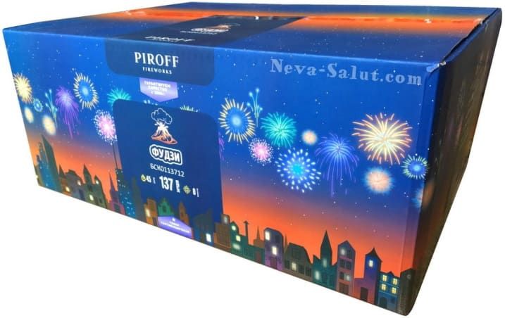 Веерный фейерверк ФУДЗИ БСК0113712 TM PIROFF собрал в себе 8 эффектов: пышный двухслойный шуршащий букет с большими красными жемчужинками; великолепные растрескивающиеся переливающиеся цветы в окружении красных бусинок; пышный двухслойный трещащий букет с огромными зелёными звездами; сползающие по ветвям зелёные переливающиеся бусинки переходят в огромное серебряное шуршащее облако; пышный двухслойный мерцающий букет с крупными голубыми бусинками; великолепные растрескивающиеся переливающиеся цветы в облаке ярко - голубых жемчужин; сноп из длинных золотых сияющих нитей; занавес из ниспадающих переливающихся ив и разноцветных звёзд.
