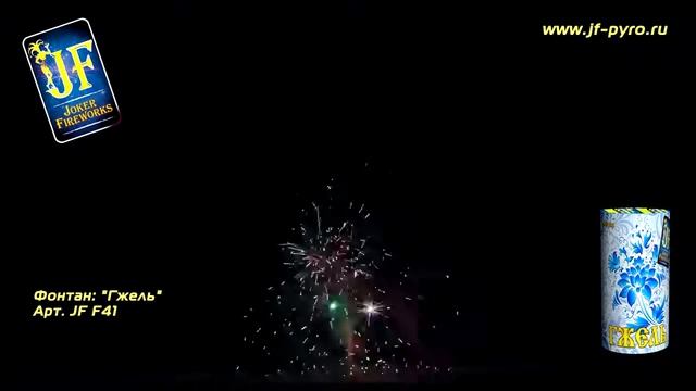 Пиротехнический Фонтан ГЖЕЛЬ JF F41 от компании JOKER включает в себя эффекты: сноп искр, сноп золотых трещащих искр, поток разноцветных искр, трещащие разрывающиеся звезды, золотое трещащее облако (Мультиэффект).