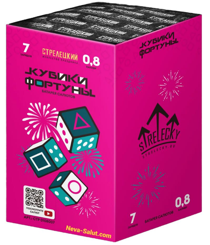 Батарея салютов КУБИКИ ФОРТУНЫ СТР0108007 — создайте незабываемое небесное шоу с продукцией от ТМ "Стрелецкий"