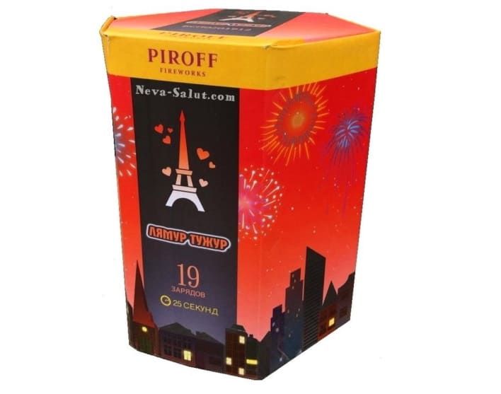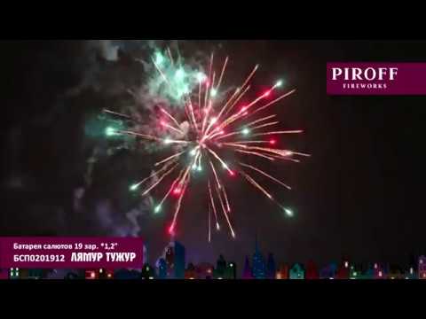 Батарея салютов для влюблённых на 19 залпов ЛЯМУР ТУЖУР БСП0201912 от торговой марки PIROFF собрала в себе эффекты: красно-синие пионы; зеленые пауки в окружении серебряного мерцания; разноцветные хризантемы. Финал - мелкий золотой треск.