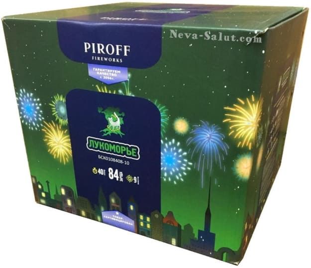 Комбинированная батарея салютов ЛУКОМОРЬЕ БСК0108408-10 от пиротехнической компании PIROFF включает в себя 9 эффектов: Золотые ивы с красными звездами; Веерный залп из золотых ив с красными звездами; Сине-золотое мерцание; Веерный залп из сине-золотого мерцания; Золотые ивы с синими звездами; Веерный залп из ив с синими звездами; Золотые пальмы.