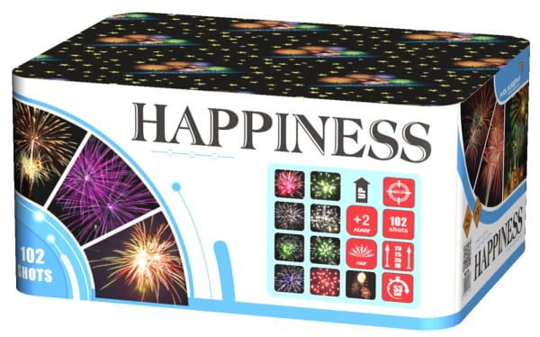 Батарея салютов HAPPINESS (0,8"; 1"; 1,2" / 102 залпа)