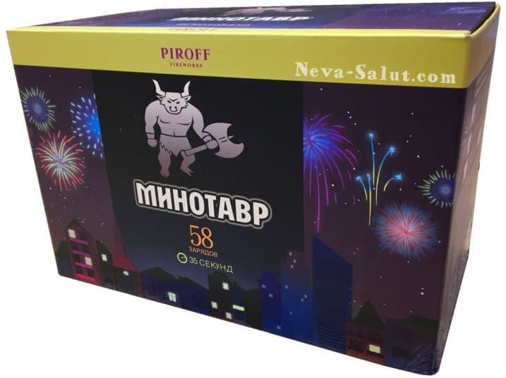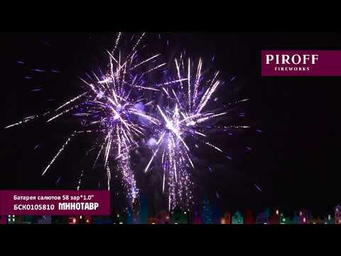 Сказочный фейерверк на 58 зарядов МИНОТАВР БСК0105810 от пиротехнической компании PIROFF собрал в себе разные эффекта: мерцающие хризантемы раскрываются яркими цветными звездами; букеты из серебряных хризантем с синими жемчужинами; разноцветные мерцающие пионы. Трещащие облака с яркими звездами. Финал - золотое облако с зелеными жемчужинами.