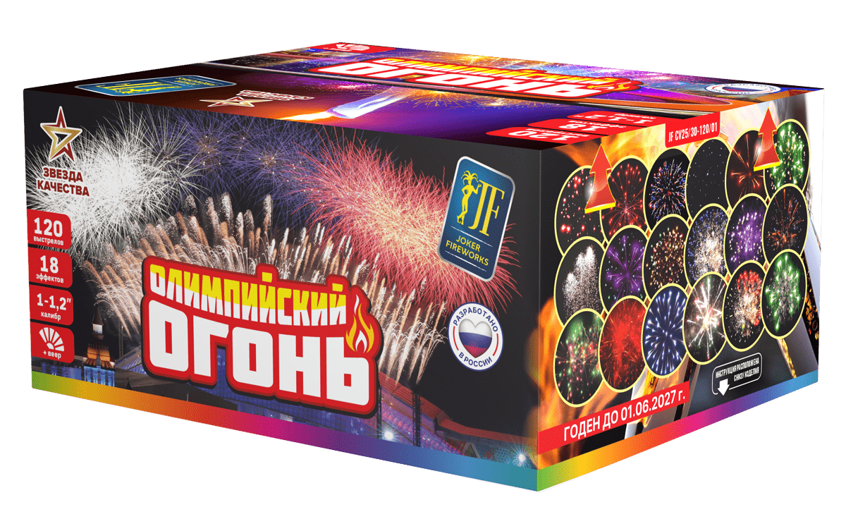 Батарея салютов ОЛИМПИЙСКИЙ ОГОНЬ (1"; 1,2" / 120 залпов)