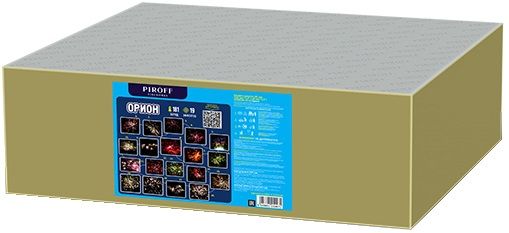 Салют ОРИОН БСК0418112-15 от торговой марки PIROFF состоит из 181-го заряда с 19-ю прямыми и веерными эффектами: Парча и красное мерцание; Парча и зеленое мерцание; Красные ивы и синие звезды; Серебряные ивы и пурпурные звезды; Цветные мины; Неоновые звезды; Желтые пионы; Красно-синие пионы; Конские хвосты; Желтые георгины и треск; Пурпурные георгины и серебряный треск; Мерцающие красно-синие пионы; Мерцающие оранжево-зеленые пионы; Мерцающие ивы; Зеленые мерцающие пальмы и золотой блеск; Золотой треск; Серебряные рыбки; Треск и золотая парча; Цветное трещащее облако.