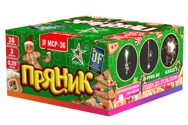 Батарея салютов ПРЯНИК JF MCP-36 способна создать настоящее пиротехническое шоу, увенчав собою ваш праздник.