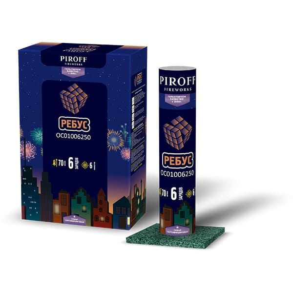 Фестивальные шары РЕБУС ОС01006250 от пиротехнической компании PIROFF включают в себя 6 зарядов с эффектами: Цветной пион; Разноцветная хризантема; Парча и золотой треск; Трещащее облако; Пальма; Золотой треск.