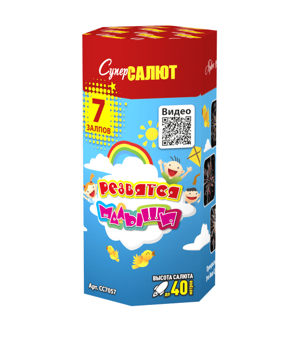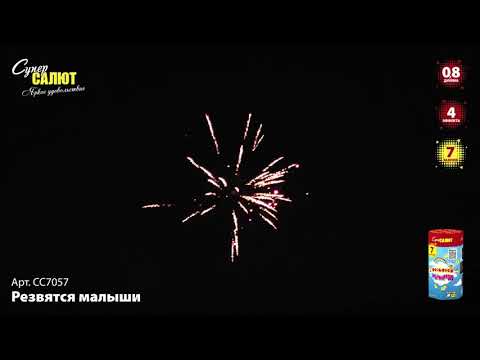 Фейерверк СС7057 РЕЗВЯТСЯ МАЛЫШИ от пиротехнической компании СуперСАЛЮТ состоит из 7 зарядов включающих в себя 3 эффекта:
