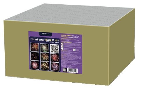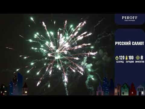 Премиальный фейерверк БСП0110018 РУССКИЙ САЛЮТ от пиротехнической компании PIROFF состоит из 100 зарядов включающих в себя 8 невероятно красивых эффектов: Цветные пионы; Парча и яркие звезды; Золотые ивы и синие звезды; Треск и яркие звезды; Пауки и красные зыезды; Красные ивы; Зеленые пауки; Красные хризантемы с блеском.