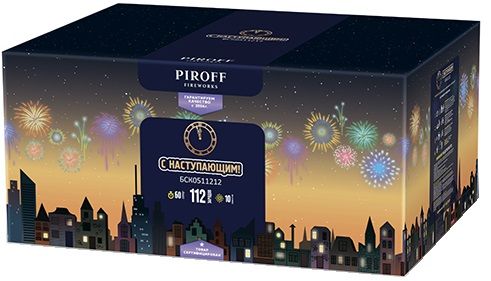 Салют С НАСТУПАЮЩИМ! БСК0511212 от торговой марки PIROFF состоит из 112-ти зарядов с 10-ю эффектами: Золотые ивы и красный блеск; Треск и цветные звезды; Золотые шлейфы; Ивы и красные вспышки; Пурпурно-зеленые сферы и красный блеск; Трещащие пальмы и шлейфы; Ивы с цветными кончиками; Цветные букеты и серебряные рыбки; Шуршащие цветы с блеском; Ивы и красные стробы.Грандиозные праздники и торжества, такие, например, как Новый Год, юбилей, выпускной вечер или свадьба, оставляют в памяти неизгладимые впечатления своим размахом и грандиозностью. А как можно представить себе торжество без фееричного окончания и залпов разрывающихся в небе салютов? Батарея салютов С НАСТУПАЮЩИМ! БСК0511212 поможет создать праздничное настроение, запуская в небесный простор пиротехнические элементы, взрывающиеся разными формами и эффектами.