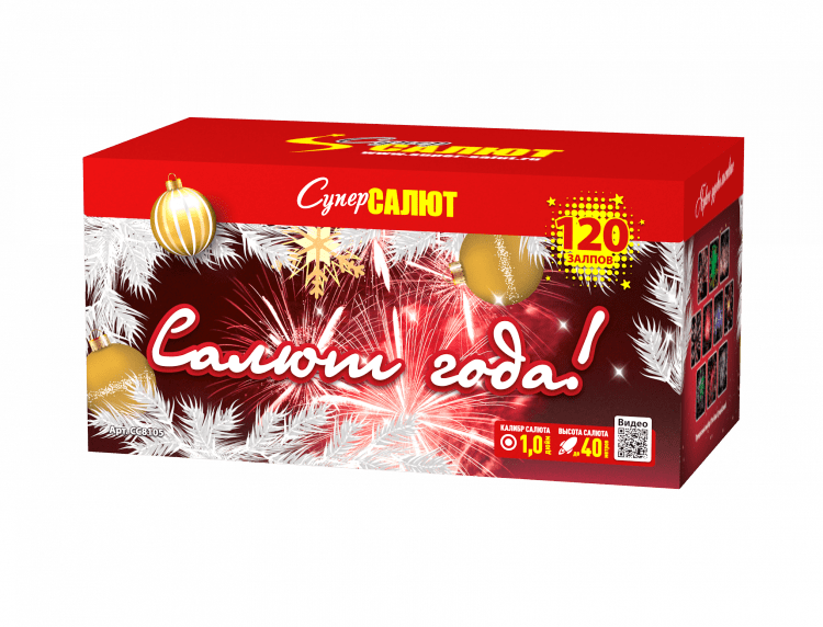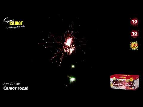 Салют СС8105 САЛЮТ ГОДА! от пиротехнической компании СуперСАЛЮТ состоит из 120 залпов и включаетв себя следующие 10 эффектов: