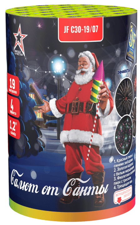 Батарея салютов САЛЮТ ОТ САНТЫ JF C30-19/07 по самой приятной цене можно купить в нашем интернет-магазине. Здесь вы найдете большой выбор фейерверков, расплатиться за которые можно любым удобным способом: