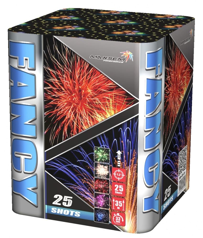 В нашем интернет-магазине пиротехники в СПб Вы можете купить фейерверки Maxsem, а именно батарея салютов FANCY SB-25-01 на 25 залпов недорого по цене дешевле, чем в других магазинах пиротехники. Мощная Батарея салютов FANCY SB-25-01 на 25 залпов состоит из четырёх разных эффектов.Калибр диаметра ствола 1,2 дюйма, что позволяет вылететь заряду на высоту до 40 метров. Фейерверк раскрывается в небе достигая 15 метров в радиусе. Время работы изделия 33 секунды. Батарея салютов FANCY SB-25-01 недорогая, но самое главное - этот фейерверк сможет раскрасить небо Санкт-Петербурга яркими красками на любой праздник