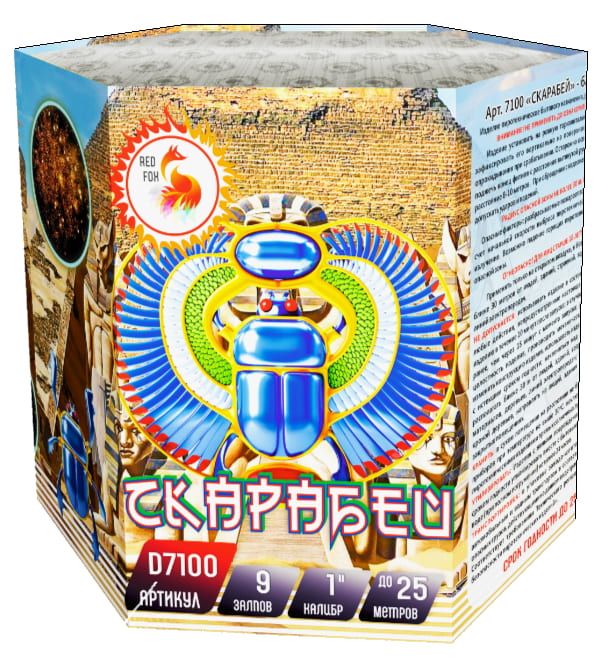 Батарея салютов СКАРАБЕЙ D7100 от пиротехнической компании RED FOX включает в себя 2 ярких эффектов.