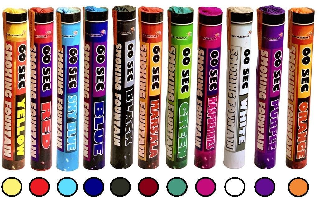 В каталоге нашего интернет-магазина собран большой ассортимент пиротехнических изделий, особую позицию в котором занимает цветной дым. Мы предлагаем покупателям SMOKING FOUNTAIN MA0512 таких оттенков: