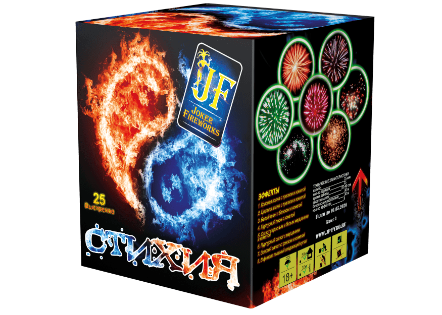 Батарея салютов СТИХИЯ JF C25-25/01 способна создать настоящее пиротехническое шоу, увенчав собою ваш праздник.