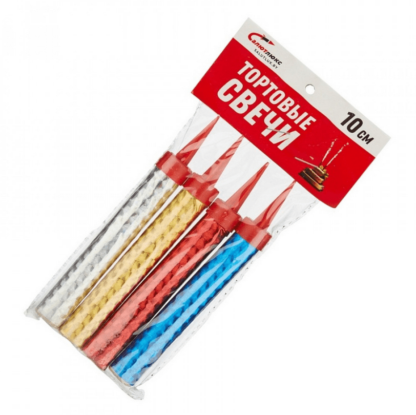 Сегодня такая традиция никуда не ушла и по сей день именинник получает свой торт, слушает поздравления и наслаждается долгожданным днем. Единственное, что изменилось, так это свечи. Сегодня на смену привычным всем восковым свечкам пришли новые изобретения пиротехнического мира, а именно фонтаны в торт ТОРТОВЫЕ СВЕЧИ 10 СМ (4 шт.) ТС-1030.