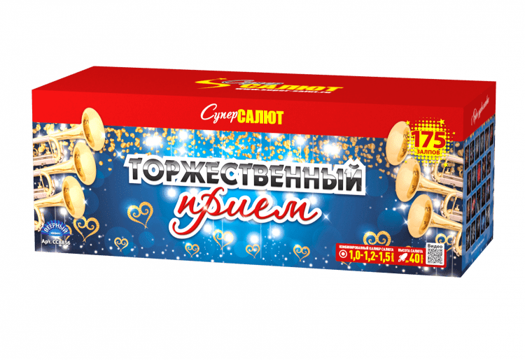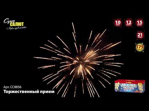 Салют ТОРЖЕСТВЕННЫЙ ПРИЁМ СС8856 от пиротехнической компании СуперСАЛЮТ состоит из 175 залпов и включаетв себя следующие 21 эффекта:
