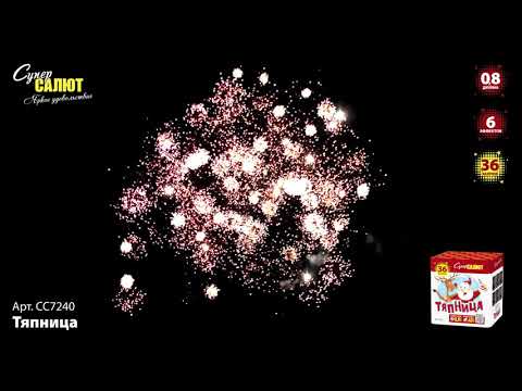 Фейерверк СС7240 ТЯПНИЦА от пиротехнической компании СуперСАЛЮТ состоит из 36 зарядов включающих в себя 6 эффектов: