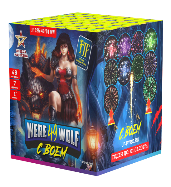 Батарея салютов ВЕРВОЛЬФ 49 JF C25-49/01WW способна создать настоящее пиротехническое шоу, увенчав собою ваш праздник.